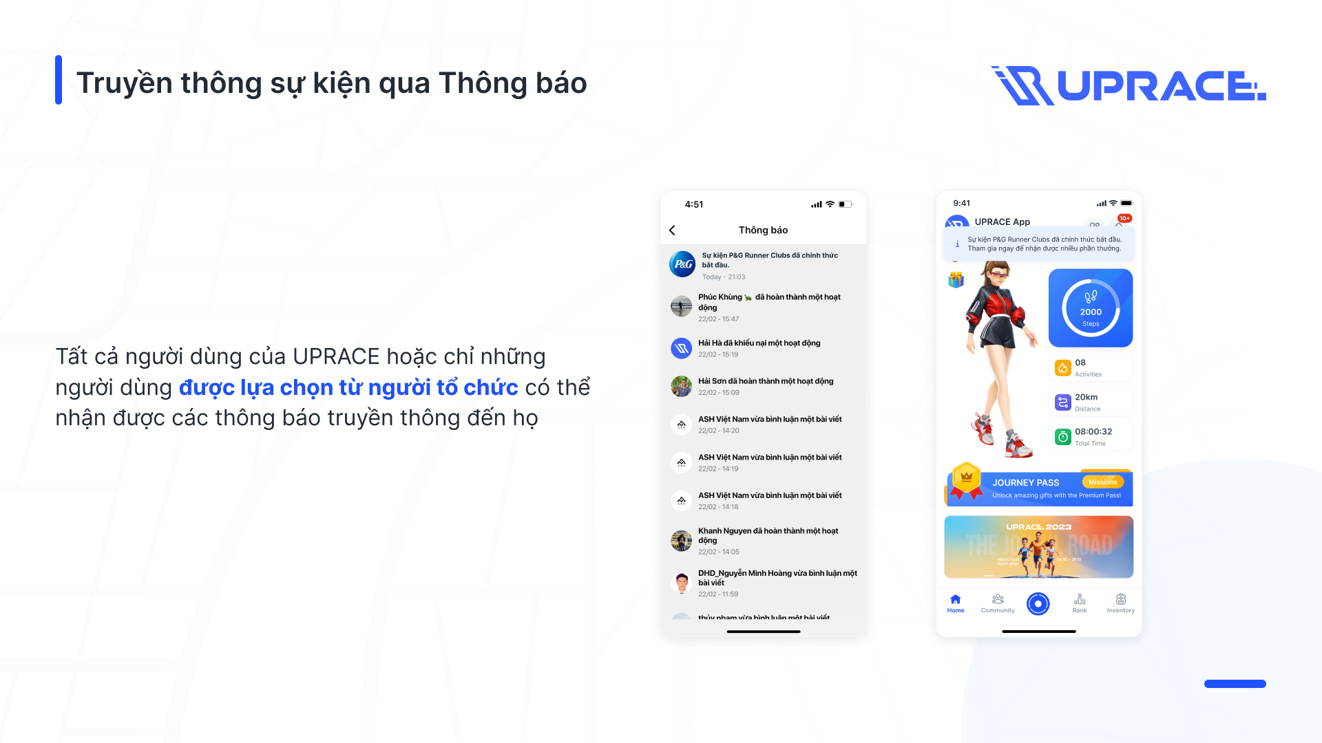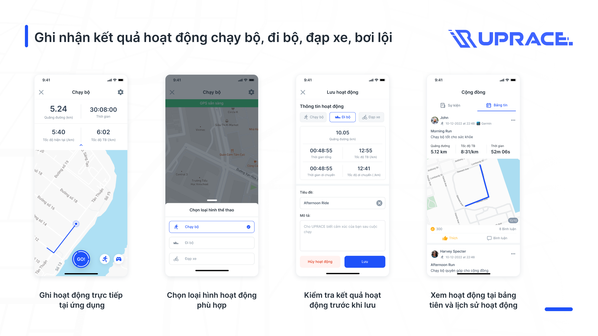 Founded in 2017, UPRACE is a sports training application for Vietnamese people. UPRACE provides users with a smart application with many special features that help contribute to the development of running and sports recording in Vietnam.